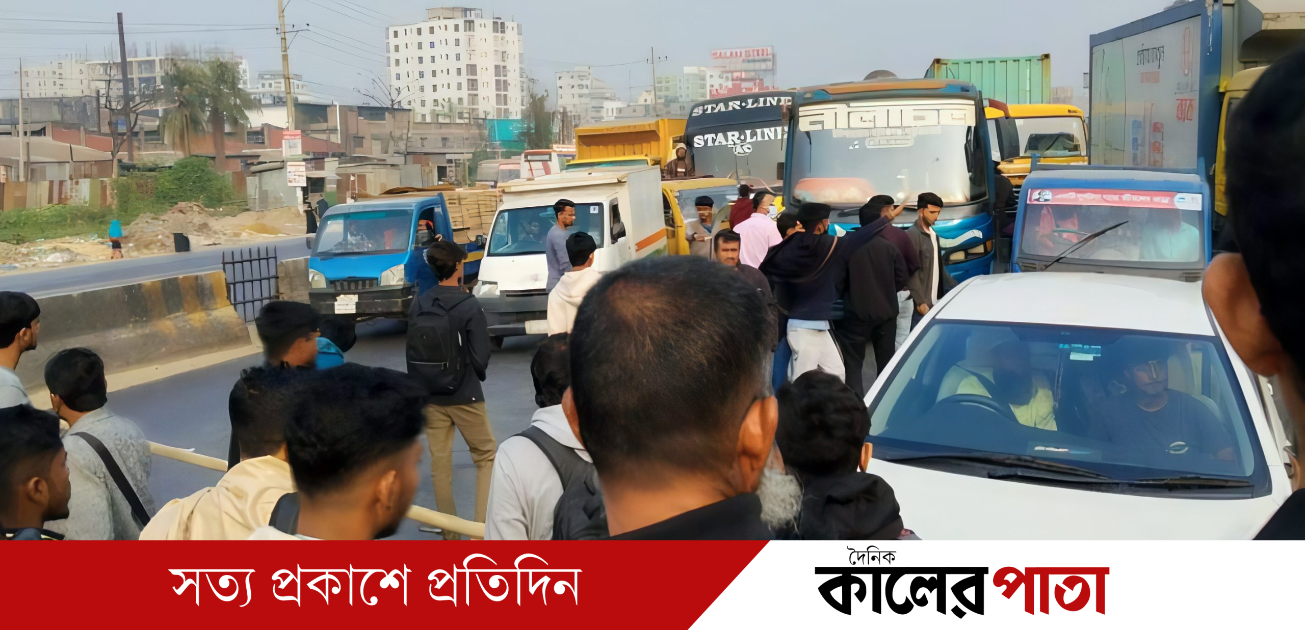 ওসমান হাদির হত্যার বিচার দাবিতে সাইনবোর্ডে ব্লকেড