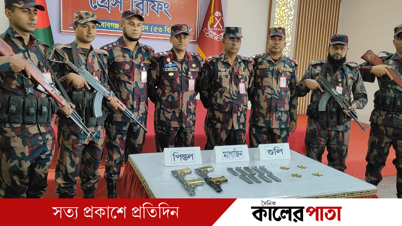 শিবগঞ্জ সীমান্তে ৫৩ বিজিবির অভিযানে ২টি বিদেশী পিস্তলসহ গোলাবারুদ জব্দ