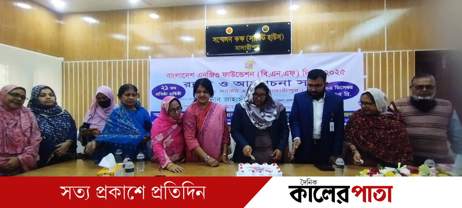 মোঃ আলী শেখ, জেলা প্রতিনিধি মাদারীপুর : মাদারীপুরে,বিএন এফ এর মাদারীপুরের সহযোগী সংস্থার আয়োজনে,আজ,২ ডিসেম্বর,২০২৫ ইং তারিখ মঙ্গলবার, সকাল ১০