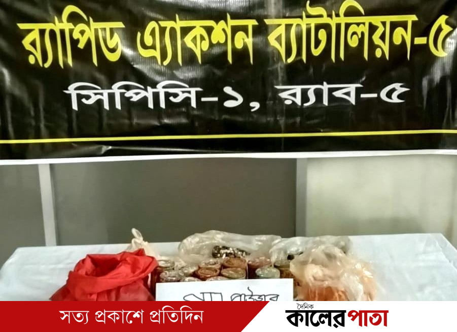 শিবগঞ্জে র্যাবের সফল অভিযানের ৩ কেজি ৩’শ গ্রাম গান পাউডার উদ্ধার